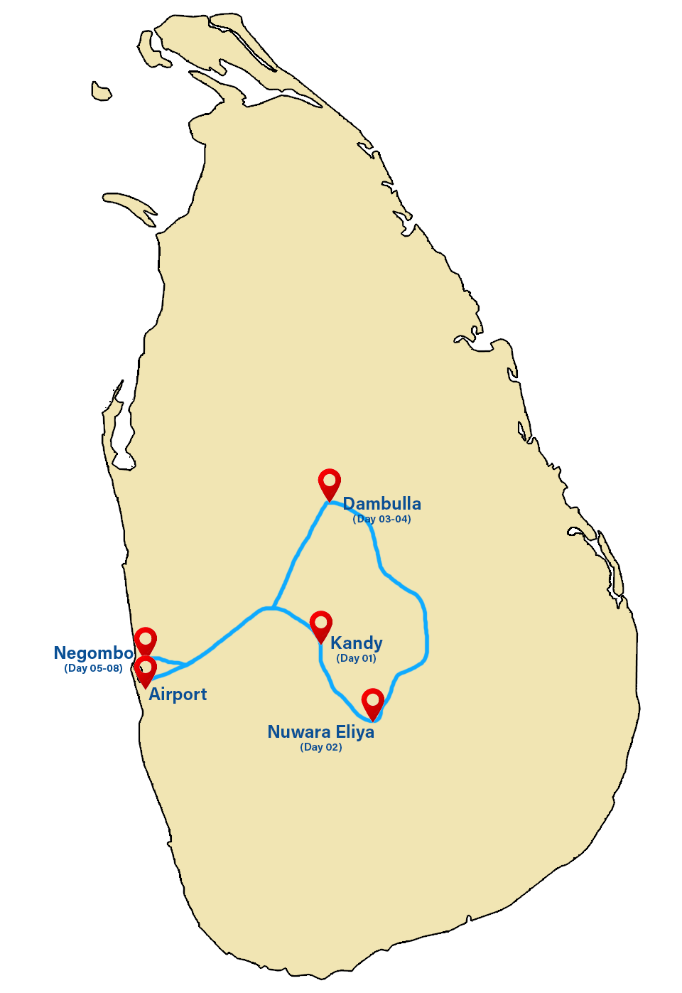 Discover Sri Lanka: From the sacred Temple of the Tooth Relic in Kandy to the breathtaking Sigiriya Rock Fortress, our itinerary offers an unforgettable journey through the heart of Sri Lanka. Explore tea plantations, wildlife at Wasgamuwa National Park, and the captivating Dambulla Cave Temple. Enjoy the sun-kissed Negombo Beach and the vibrant Colombo City, complete with shopping excursions. Uncover the enchanting essence of Sri Lanka with us.